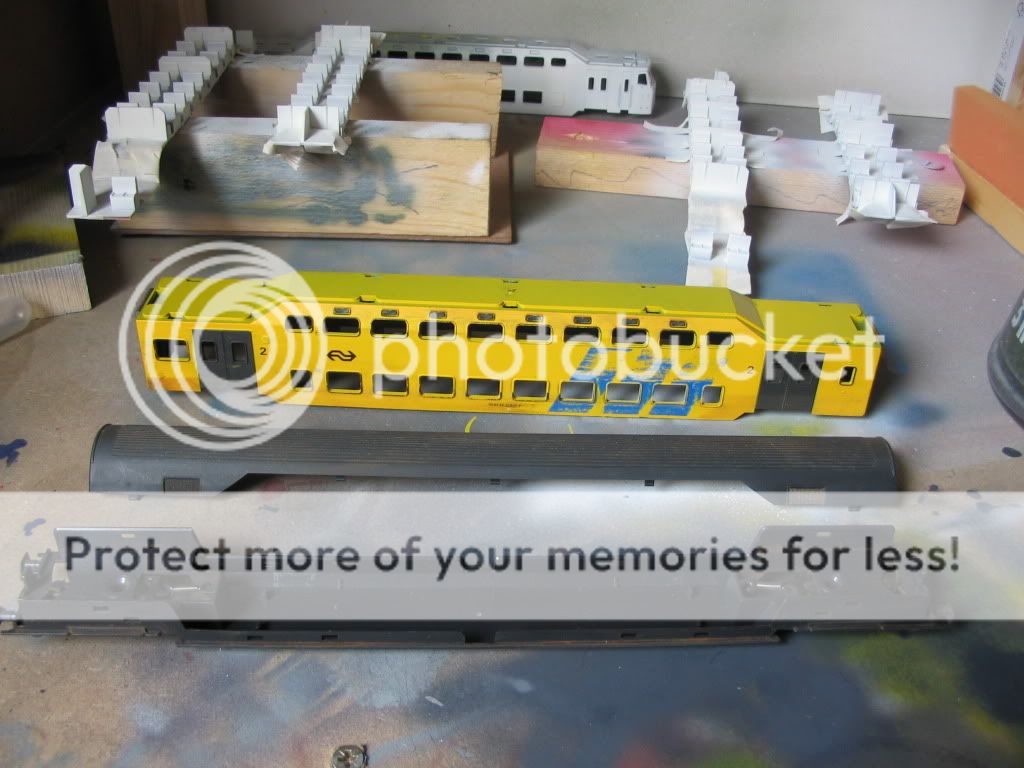 Grijs loopt boven op door zo dat je geen gele naad overhoud tussen het dak.Dan nu een tutorial reclame banen afplakken