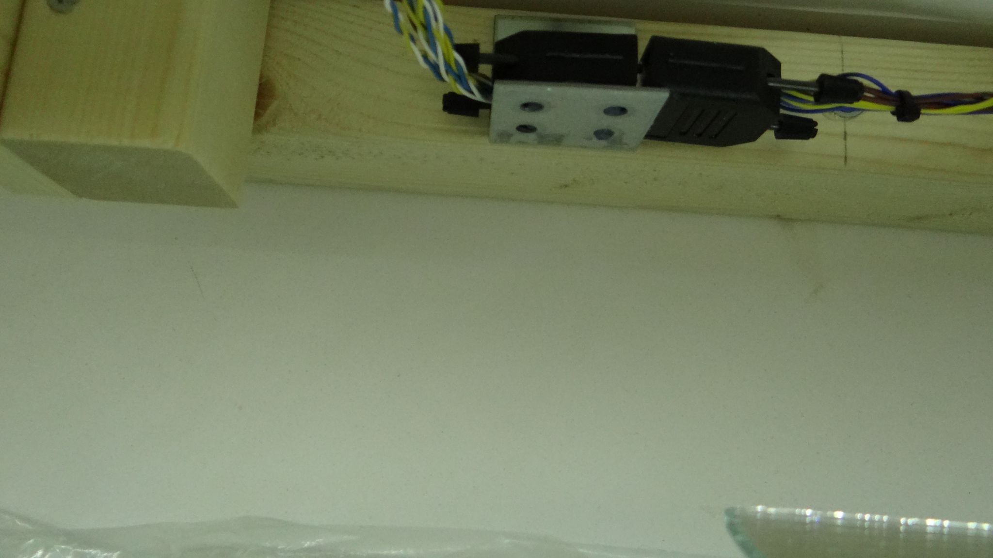 De connector is verlijmd op een stalen hoekje die op zijn beurt weer onder de baan geschroefd wordt.