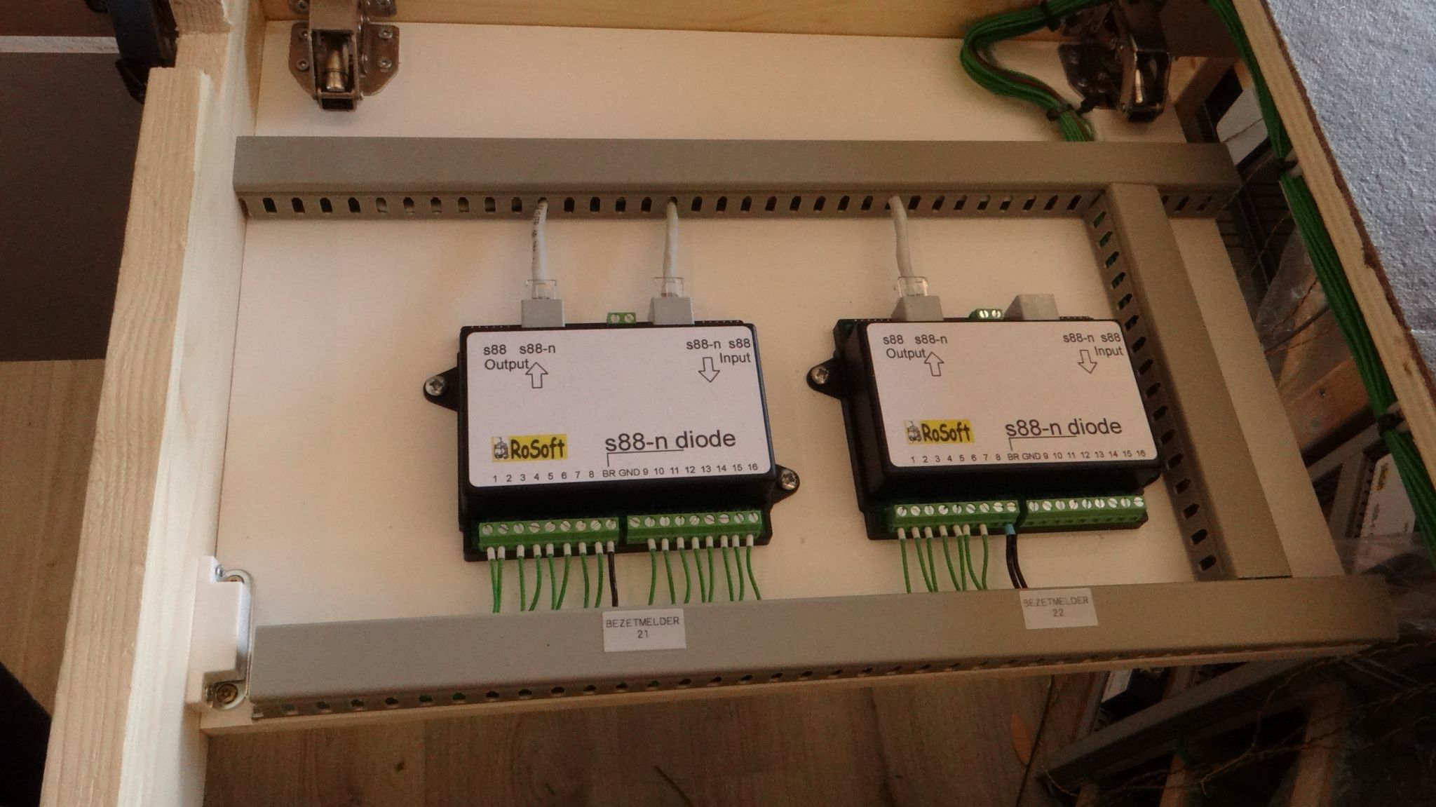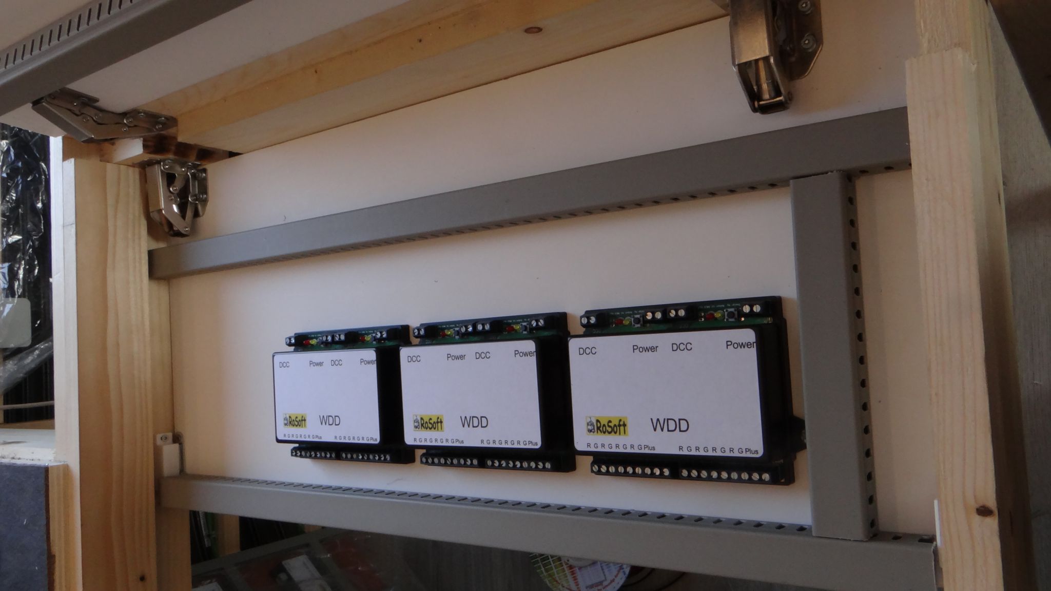Ik vond het wel slim bedacht dat je een dubbele plaat gebruikte.  Decoders op de onderste en werkbaar vanaf  boven als je de baan weg klapt.