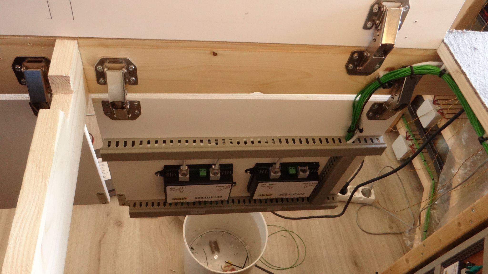 Zoals jullie in de laatste update hebben gezien was ik bezig om de S88 / wissel decoders op de bovenste plaat ( dit is de onderzijde van het maaiveld ) te monteren.