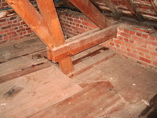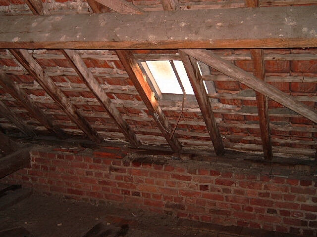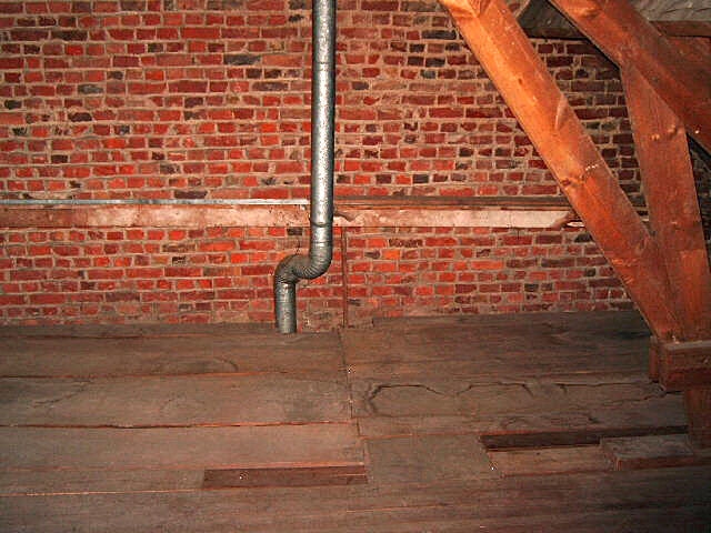 * een oude gamele schouwbuis en een bakgoot werden verwijderd, toekomstige kant v/d grote vitrine kast ...