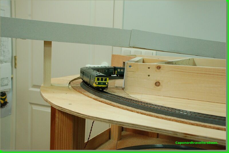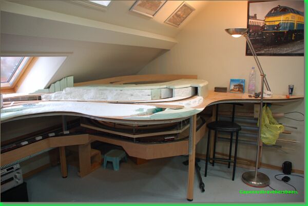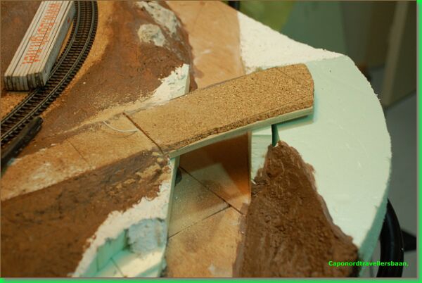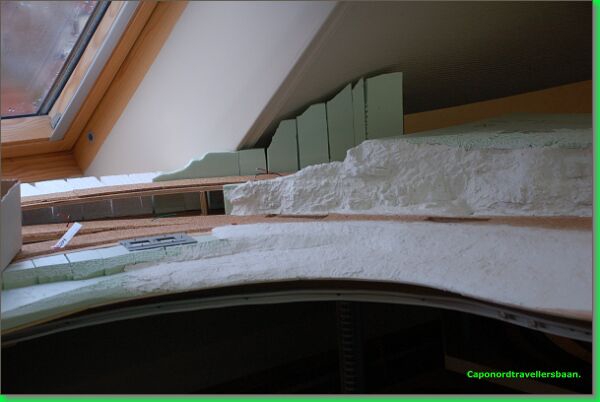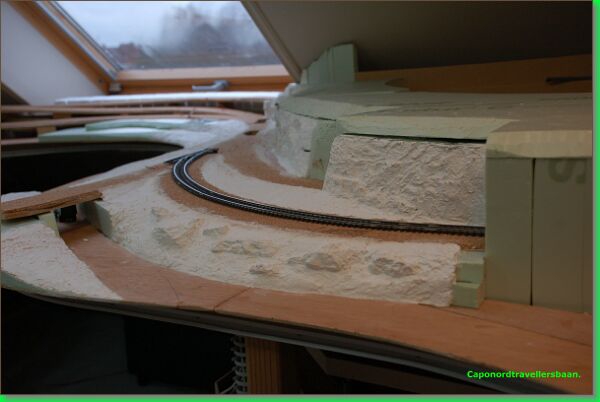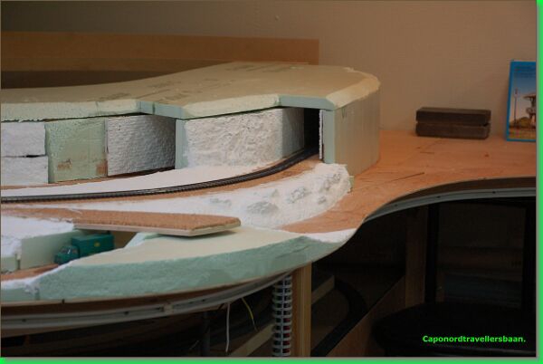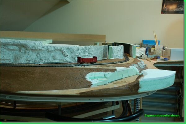 Op de voorgrond zie de glooiing van het landschap. De toplaag is met Sculptamold (USA) gemodelleerd.