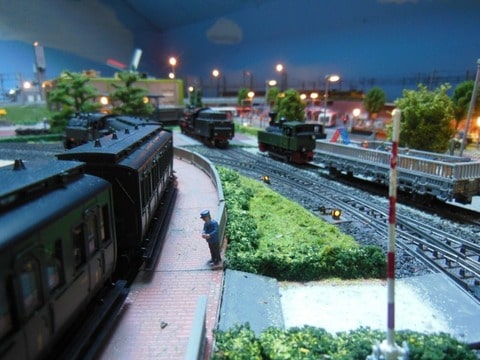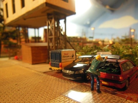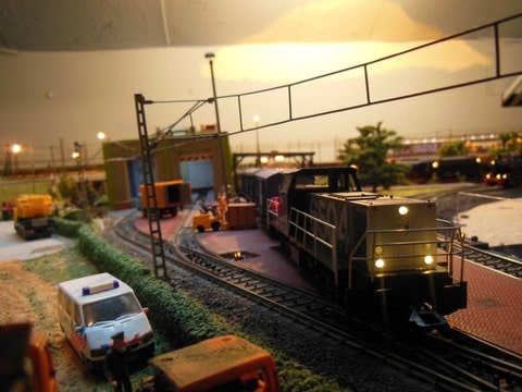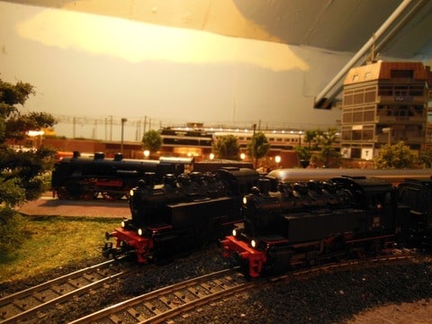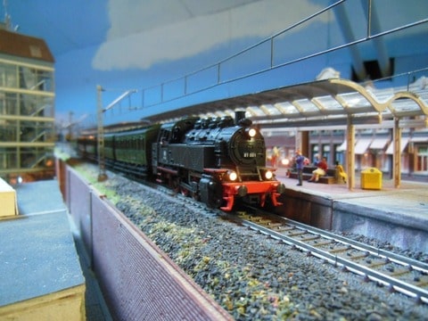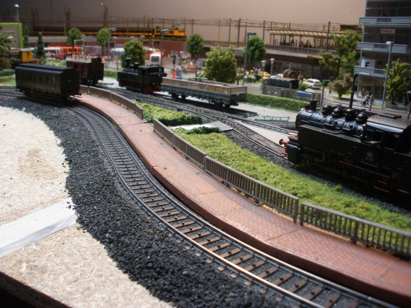 Hier staat de eerste trein vanaf deze locatie al klaar om te vertrekken. De BR81 van Hovia is inmiddels ook gearriveerd op het terrein, zonder coupé, die staat even in de loods om te worden gereinigd. (nogal wat snoepkonten, alle vuilnisbakjes vol snippertjes pepermuntrolverpakking en dropjes op de vloer)