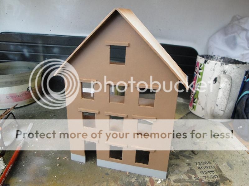 De basis van de huisjes worden wederom van karton gemaakt. Gevels worden met de airbrush op kleur gemaakt.