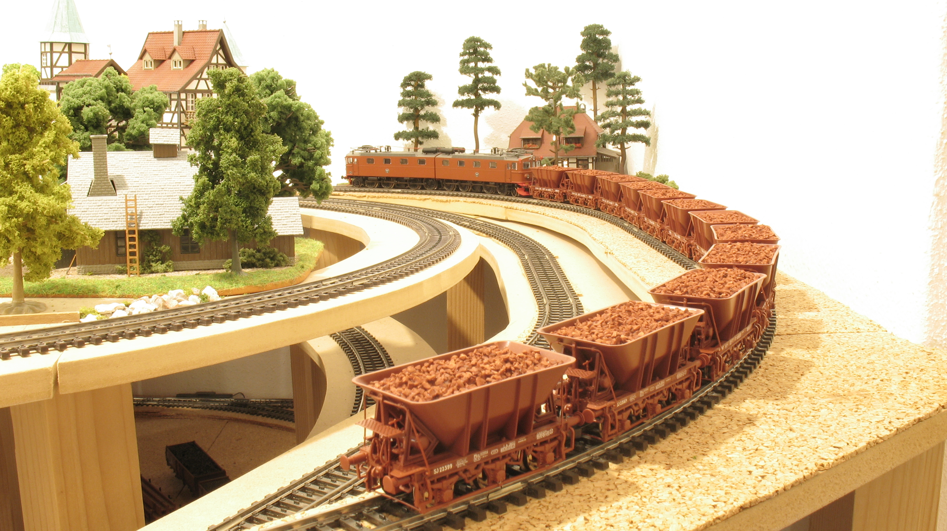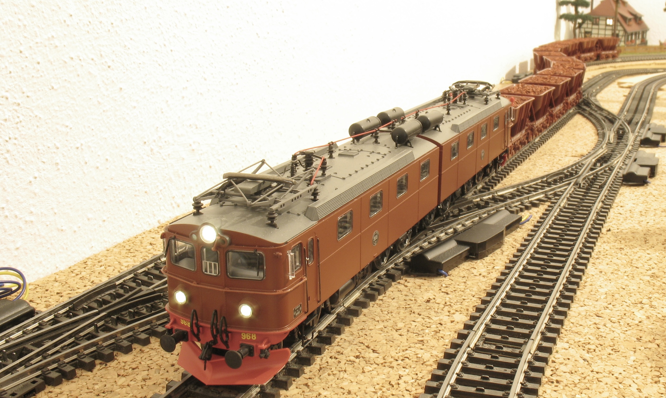 Hij nam zijn Dm een keer mee naar onze stamtafelbijeenkomst en die dubbelloc van Roco reed zo soepeltjes en zag er zo fraai uit, dat ik meteen verkocht was. Ik mocht de loc overnemen en toen is het dus allemaal begonnen. Alleen één Dm op de baan is echter een tikje saai, maar toen zag ik gelukkig in Houten de Da liggen voor een mooi prijsje. Daarna kwam de Ue en toen... nou ja, het is wel duidelijk. Het plan is nog steeds om bij de volgende baan - als die er ooit komt - een stukje Zweden erbij te bouwen - zodat ik afwisselend in Scandinavië en in Duitsland/Oostenrijk kan rijden.