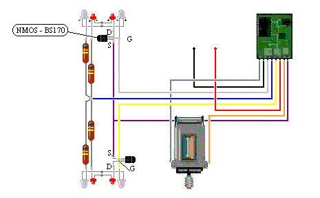 De schakeling met de Bs170, waarbij twee x twee bs170 worden gebruikt - een voor sluitverlichting schekelen en een voor schijnwerper of cabineverlichting met de rijrichting - werkt.