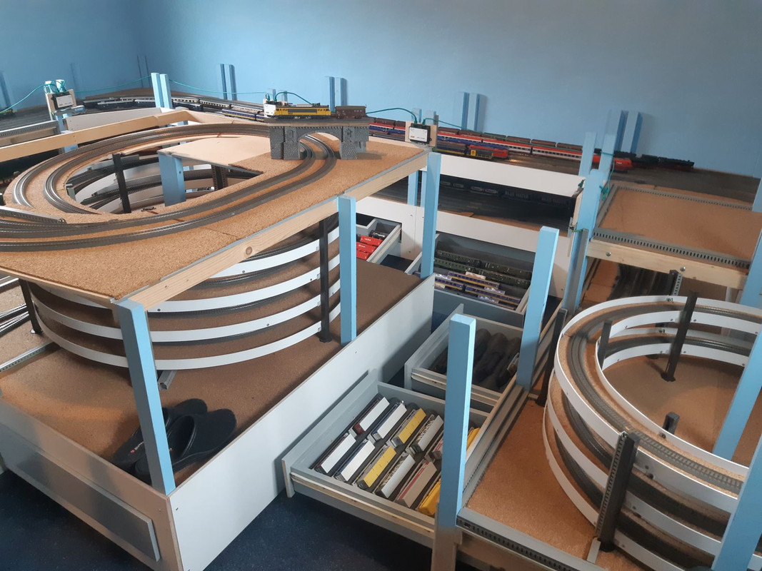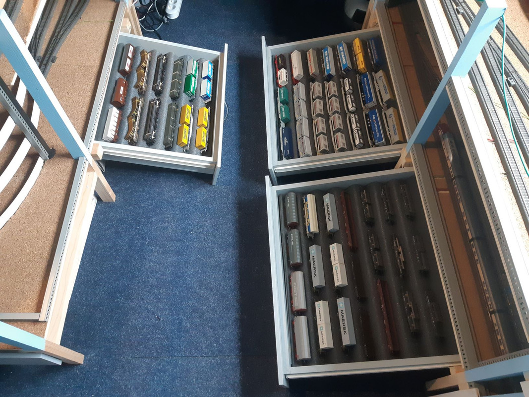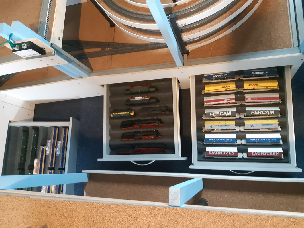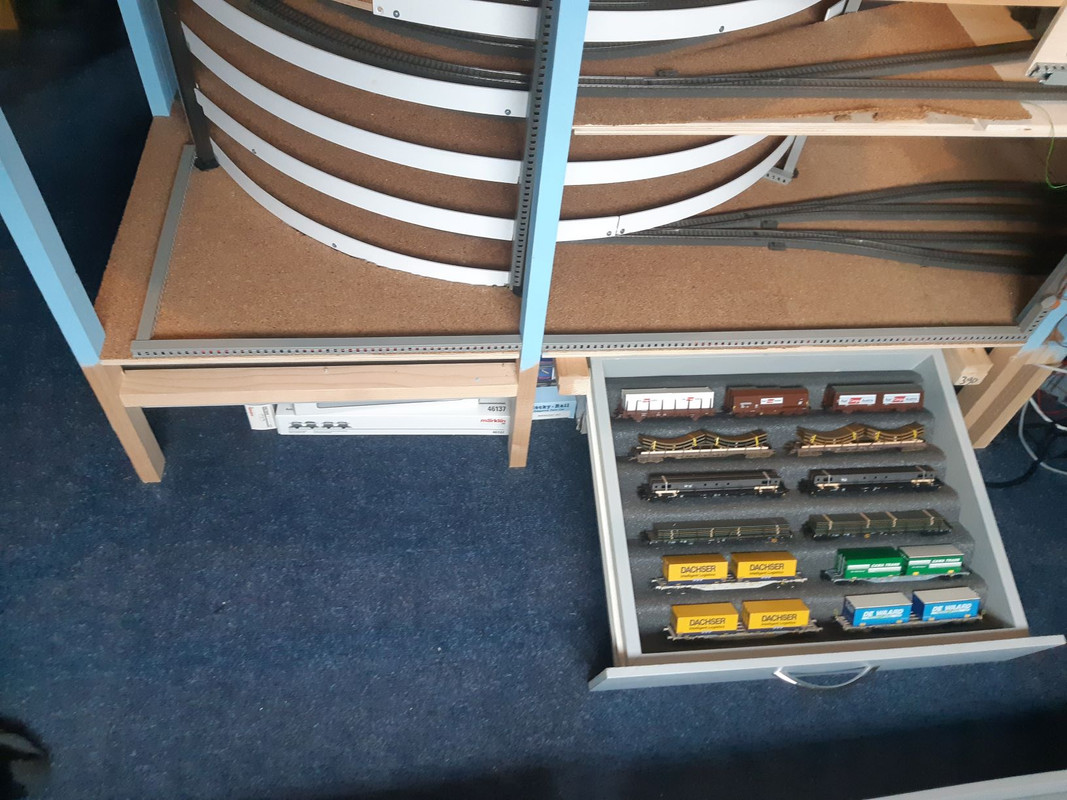 Eindelijk kunnen de verhuisdozen leeg gemaakt gaan worden, het rijdend materiaal tevoorschijn komen.